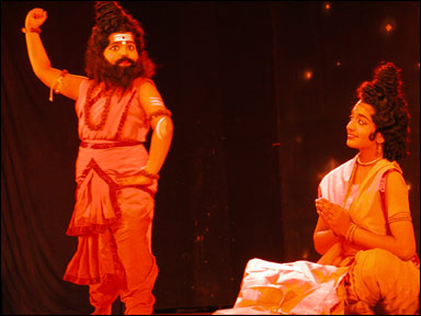 At the battlefield in Lanka, when Rama sits exhausted after a day's battle with Ravana, Agastya instructs him to meditate on the Sun God while chanting the Aditya Hridayam. He blesses Rama saying that this would energise him, and the blessings of the Sun God would secure his victory. |