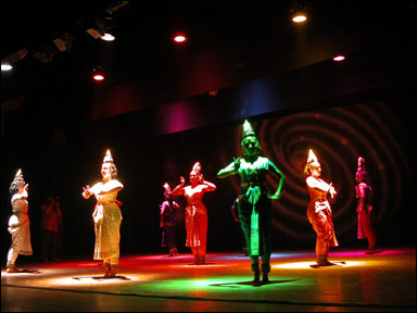 The Navagraha, clad in their respective hues arrayed as they are traditionally seen in most Indian temples, the closing ensemble of Navagraha Ula.